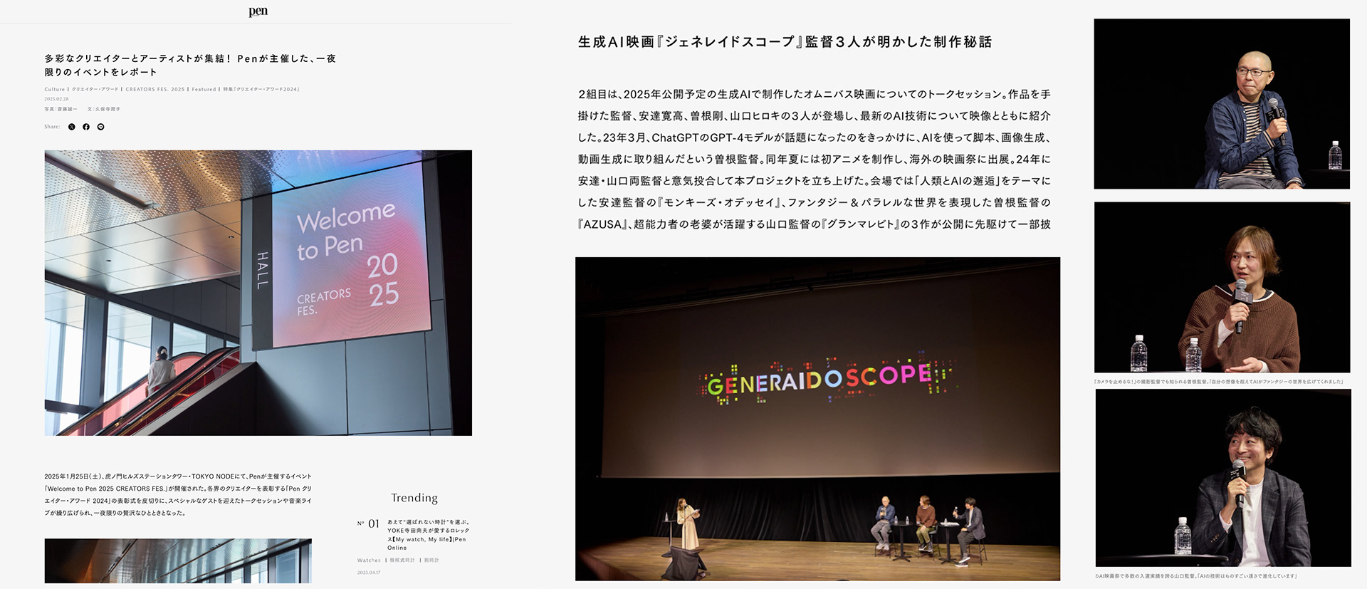 映画『ジェネレイドスコープ』制作中。2025年公開予定。