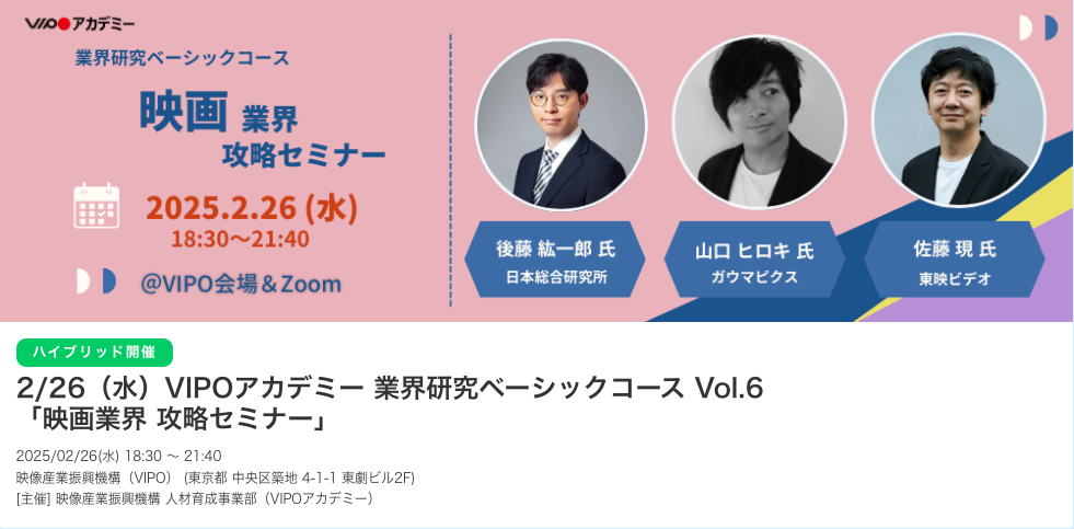 「VIPOアカデミー」~コンテンツ業界に特化した人材育成事業~